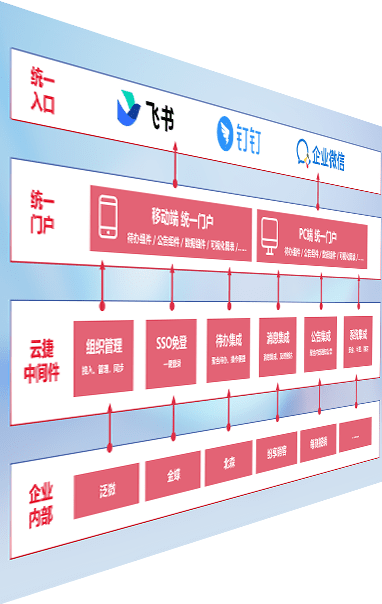 对协作平台提供支持服务,,,,支持企业应用与协作平台对接,,包含组织同步、、、、消息集成、、、待办集成等。。。支持目前主流的协作平台:钉钉、、、、企微和飞书。。